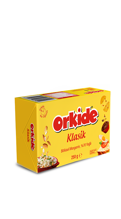 Bitkisel margarinBitkisel beslenmeye uygun V-Label lisanslı Türkiye'nin ilk margarini olan Orkide Vegan; çorbalara, sebze yemeklerine, fırın yemeklerine, hamur işlerine, tatlılara ve kahvaltılarda ekmek üstü atıştırmalıklara lezzet katar. Vegan ve vejetaryen beslenmeyi destekler.